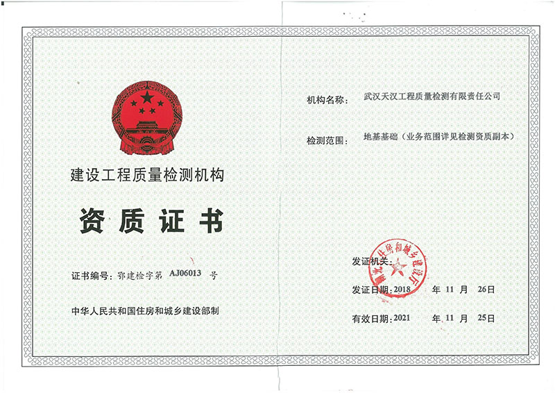 建設(shè)工程質(zhì)量檢測機構(gòu)資質(zhì)證書