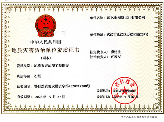 地質(zhì)災(zāi)害治理工程設(shè)計乙級資質(zhì)