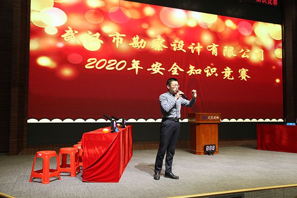 為進(jìn)一步增強(qiáng)公司廣大員工的安全意識(shí),按照武漢城建集團(tuán)《安全生產(chǎn)專項(xiàng)整治三年行動(dòng)方案》要求,結(jié)合公司“安全生產(chǎn)強(qiáng)化年”活動(dòng)部署,11月30日下午,公司在測(cè)繪院307學(xué)術(shù)報(bào)告廳舉辦2020年度“安全伴我行、知識(shí)在我心”安全知識(shí)競(jìng)賽。公司各生產(chǎn)部門積極組織員工參賽,本次競(jìng)賽共有36名選手組成12支參賽隊(duì)伍參加了此次知識(shí)競(jìng)賽。各部門負(fù)責(zé)人及員工代表共計(jì)100余人參加了此次活動(dòng),公司總經(jīng)理施木俊、副總經(jīng)理兼總工程師官善友親臨比賽現(xiàn)場(chǎng)觀看比賽。