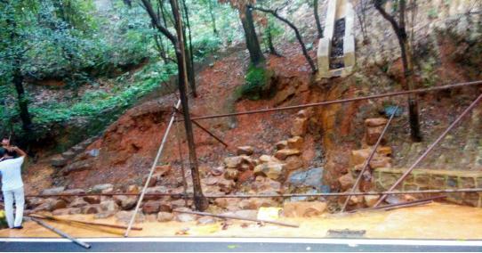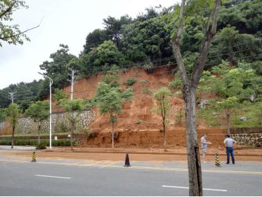 7月5日,受連日暴雨影響,國家人防防空防災(zāi)教育訓(xùn)練基地(武漢)公路邊坡出現(xiàn)多處垮塌,垮塌巖土體散落于邊坡坡腳排水溝及基地公路路面附近,影響了道路通行。公司應(yīng)急搶險團(tuán)隊火速趕到現(xiàn)場清除滑塌堆積體,及時開展填方邊坡與公路之間的土體防滲工作,重新架構(gòu)起已沖毀的管道,用毛石、砼等填筑洗空區(qū),采用削方減緩已垮塌邊坡坡度,最大程度還原了邊坡原貌,并不斷加大巡查力度,做好了基地公路沿線類似地質(zhì)災(zāi)害潛在隱患的預(yù)判和預(yù)處置。